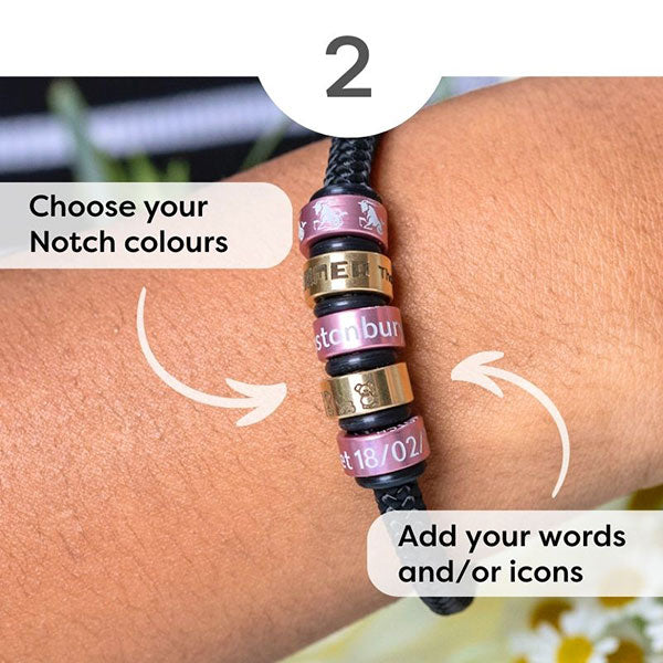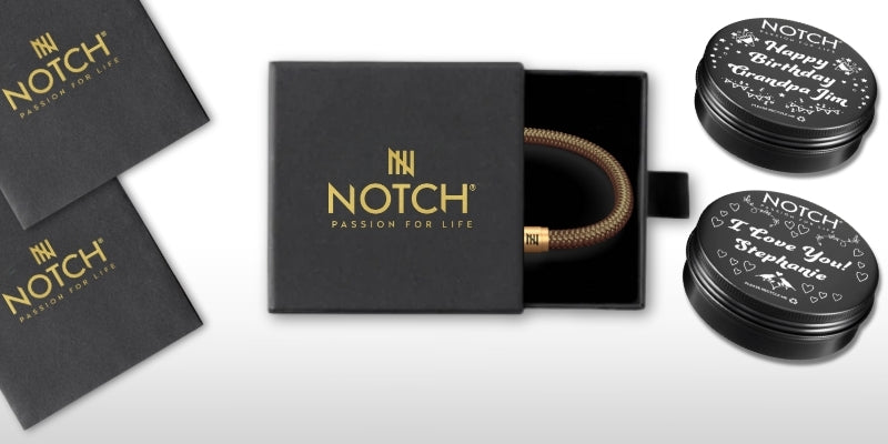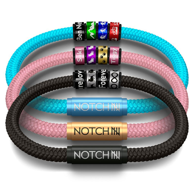 NOTCH is the stylish, go-anywhere bracelet where you choose the message. Add engraved Notches for all life's passions. Search for sports, hobbies, achievements, milestones, love, motivation, positivity, family, pets...